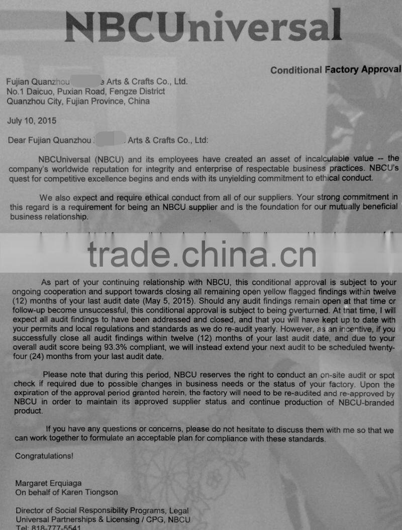 With good quality, reasonable prices and stylish designs, our products are extensively used in holiday ornaments, adornment, gifts, souvenirs, home decoration, promotional products and other industries. We do our best to provide first-class products and first-class service. Quality Management System Certification, ISO14001:2004 Environmental Management System Certification and T28001-2001 Occupational Health and Safety Management System Certification.