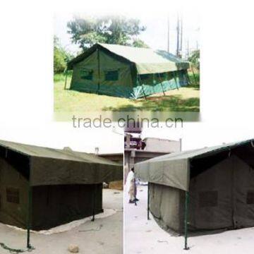 Tent is metal frame supported (not poles fixed by ropes). Galvanized steel frame with specifications of