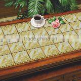 lace tablecloth, sort of many styles in crochet texture, can be finished with golden printed or color printed with different color of body material. Sizes can be 54" x 20m or separate designs, 100x60,130x80, or 140x180cm etc...Also can bemade in plain white as customers' requirements.