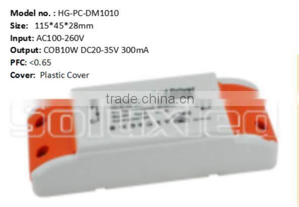 | HG-PC-DM1010 | 115*45*28 | COB10W | AC100-260V | DC20-35V | 300mA | <0.65 | $3.90 |