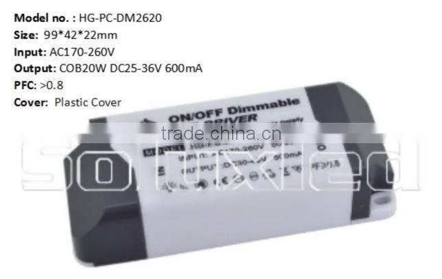 | HG-PC-DM2620 | 99*42*22 | COB20W | AC170-260V | DC25-36V | 600mA | >0.8 | $2.03 |