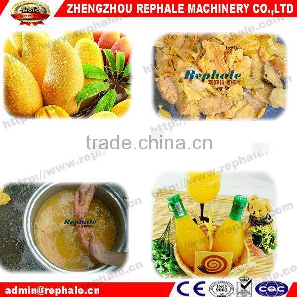 This machine is suitable for squeezing the tomatoes, pineapples ,oranges and various vegetables and fruits, and also can be applied to remove the mango stone and skin. It can separate the residues and pulps from seedless fruits.This model has two channels , the first channel is for removing mango stone and skin. The second channel for separating the mango pulp and residue.The sieve diameters in the two channels can be selected according to the requirements of the materials.