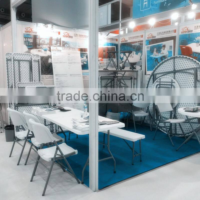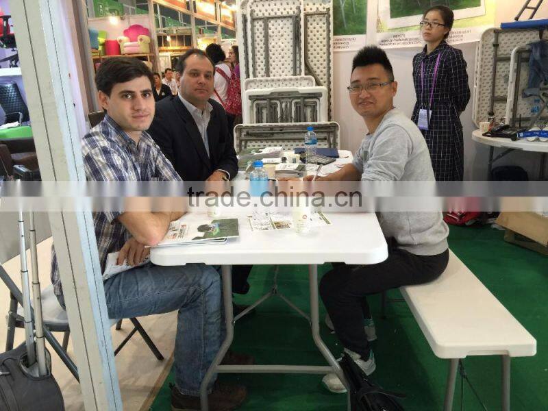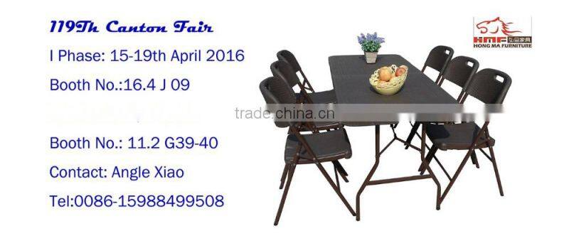 HDPE Palstic folding table * widely used in the market indoor, outdoor, and commercial used * Easy storage, and easy transport. * All the table and chair are recycle