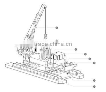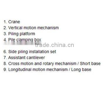 Variable hydraulic system with low loss and constant power is used in China ZYS80 80T static hydraulic static press pile driver. And merging hydraulic system is adopted in the main parts of the machine and the crane to save energy. The hydraulic system is with large power and great flow. The piling drive mechanism of China ZYS80 80T hydraulic static press pile driver is with multi-speed control. And it is quick to get ready for operation. We also use the hydraulic system which oil flow can merge to consumption for both the main machine and crane. Our China ZYS80 80T hydraulic static pile driver is more convenient to be dismantled and shipped because the connection and lay out of the long boad and the short ones are different. The side pilling mechanism can be taken off to reduce the length of machine to be shipped. Thus the weight of the separated units can be reduced greatly during transportation. China ZYS80 80T hydraulic static press pile driver can be opened in the middle so that the lift arm of the crane can pass throught it during transportation.