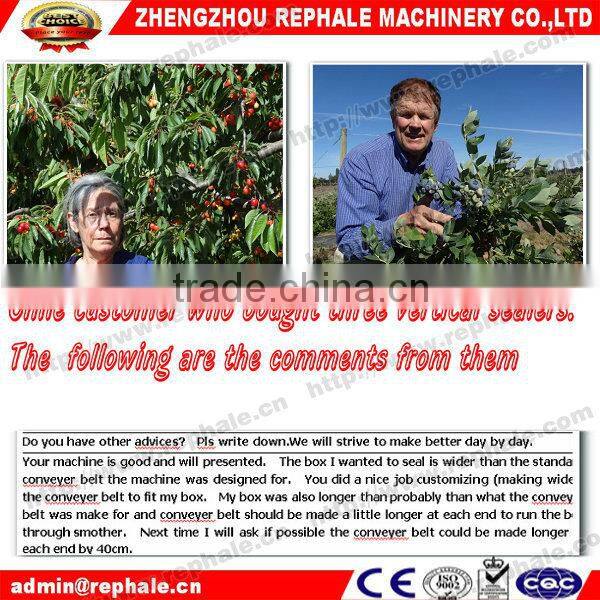The customer who comes from Chile,they use this machine to seal the small box which is used to hold the cherries inside of it.The outer is plastic bag needs to be sealed
