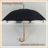 23''Black Pongee Wooden Umbrella for Hotel Gift With Wooden Handle