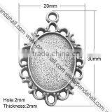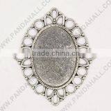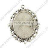 Antique Silver Zinc Alloy Pendant Cabochon Settings, Oval, Cadmium Free & Lead Free, Tray: 25x18mm(TIBEP-M003-11AS-RS)