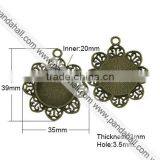 Tibetan Antique Sliver Blank Tray Pendant Cabochon Settings(EAAA051Y-NF)