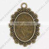Antique Bronze Oval Blank Pendant Settings, Cadmium Free & Nickel Free & Lead Free, Tray: 25x18mm(TIBEP-M003-17AB-NR)