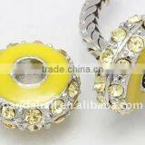 Alloy Rhinestone Beads, Enamel, Platinum Metal Color, Rondelle, Yellow, About 14x6.5mm, Hole: 5mm(ALRI-B002-11)