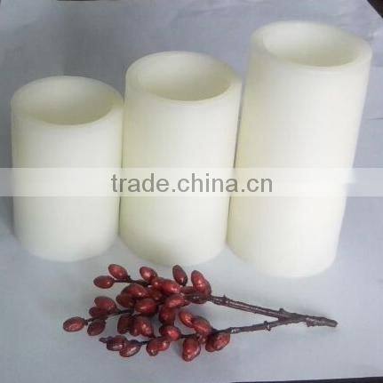 Home interior decorative flat top white pillar set electric realistic flicker wax candle with timer