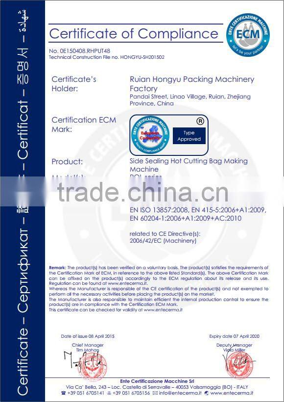 Bag cutting and sewing by this machine with good effect ,collection effect is in good stack.can save about 70% larbor cost.