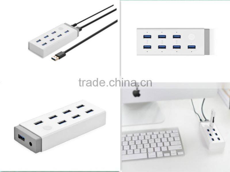 USB 3.0 7-Port Hub can easily add 7 USB ports to your USB equipped PC, laptops and tablets,eliminating the trouble of switching among devices. It delivers superspeed USB 3.0 data transfer rates of up to 5Gbps.Moreover, it meets BC 1.2 charging specification, offering quick charges to your USB-enabled digital devices whenever your computer is shut down, in sleep mode or when the hub is disconnected from a computer.