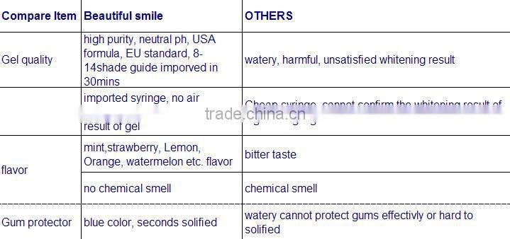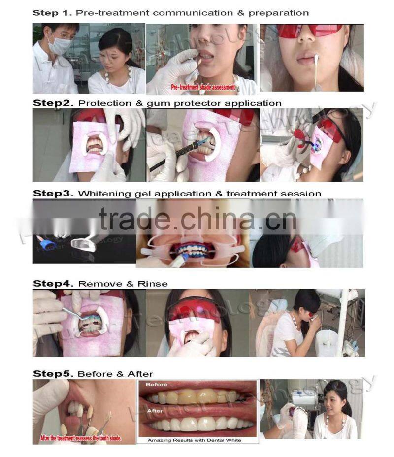 the teeth can be improved 8-14 Shades after 30 minutes treatment together with teeth whitening lamp