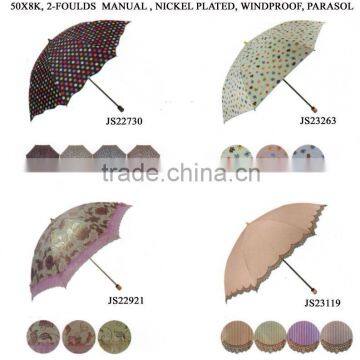 50CM X 8K,   2-FOLDS MANUAL, NICKEL PLATED, WINDPROOF,  PARASOL,