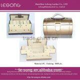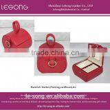 New Style Cylindrical Portable Leather Leopard Red Jewelry Box