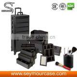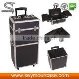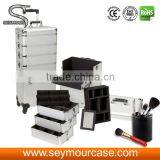 Aluminum Gray Rolling Cosmetic Case With Drawers & Dummy Plates
