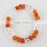 Carnelian & Crystal Quartz Round Beads Bracelet