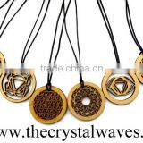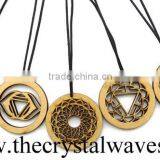 Wholesale Wooden Chakra Pendant 8 Pcs Set With Flower of Life