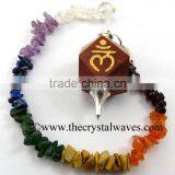 Red Aventurine Vam Engraved Hexagonal Pendulum With Chakra Chips Chain