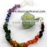 Green Aventurine Vam Engraved Hexagonal Pendulum With Chakra Chips Chain