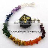 Mix Gemstones Om Engraved Hexagonal Pendulum With Chakra Chips Chain