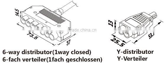 Applicable in power connection and coupling between lamps such as lighting wiring in offices, kitchen, bathroom, shop and household furniture, display cabinets and mountable lighting.
