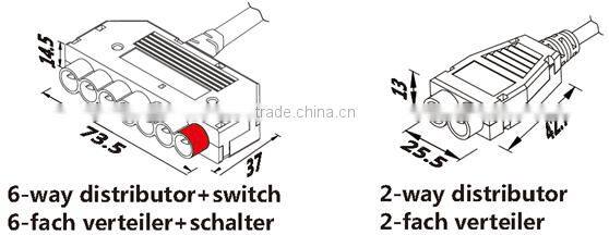 3) output line is 2 meters long Mini760 male plug wire, wire is VDE 2 × 0.75mm ² wire.