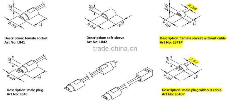 Applicable in power connection and coupling between lamps such as lighting wiring in offices, kitchen, bathroom, shop and household furniture, display cabinets and mountable lighting.