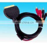 Scart Plug to 6 RCA Cable Black Color Cable Injection Rohs Comliant