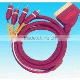 Scart Plug to 6 RCA Cable Assembly Type Red Cable Gold Connector Rohs Comliant
