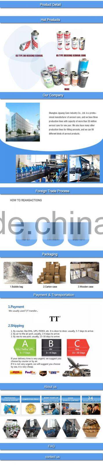 empty metal tin can usage: | It can be filled with hair spray(cosmetic series), air freshener, cleaning agent, anti-fogging agent, spray paint(car care series),car cleaning, shaving foam,insecticide,body spray ,etc. |