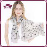New Fashion Ladies Spring Summer Birds Print Long Scarves for Women
