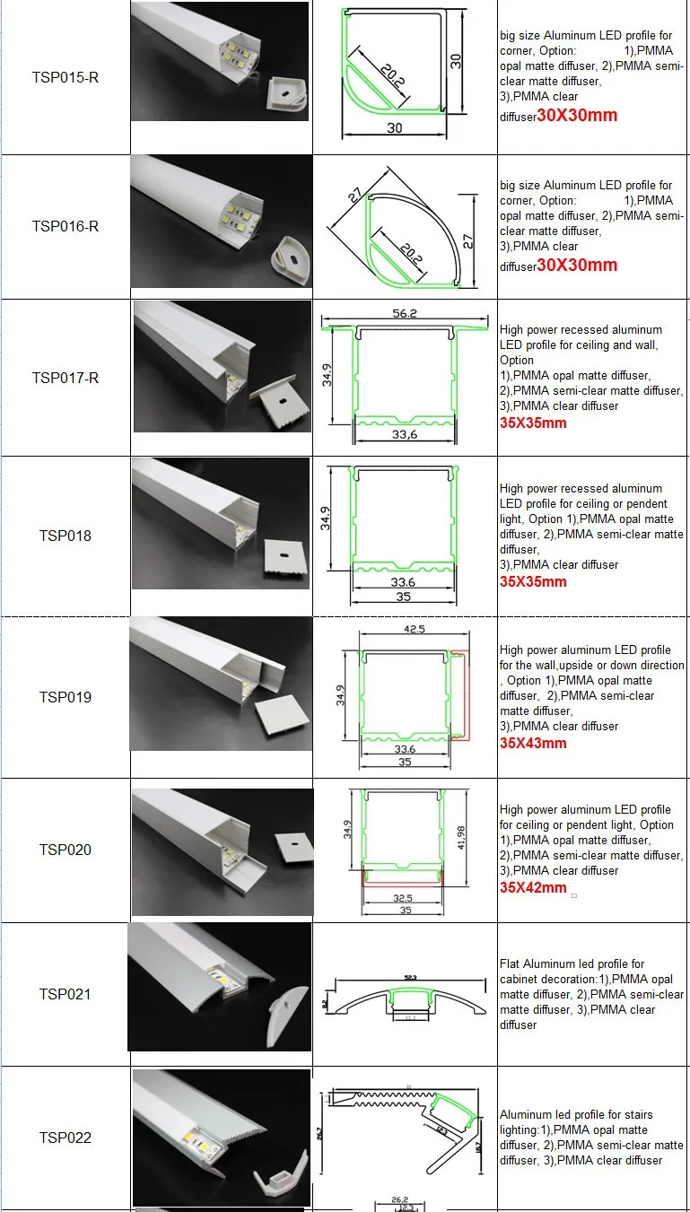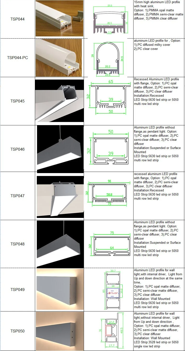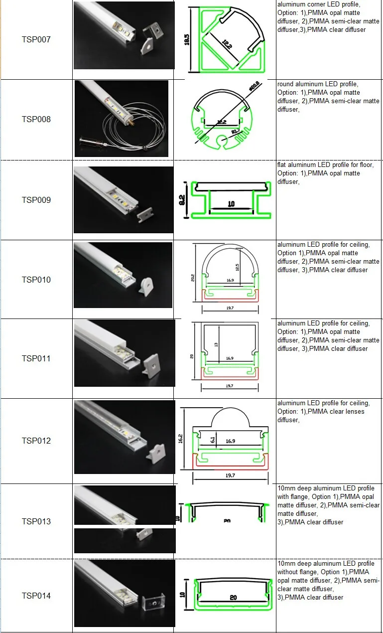Also ,for the shape of the led aluminum profiles ,we have several styles for choice ,if your quantity is over than 1000m ,we can make the new styles for u without tooling cost