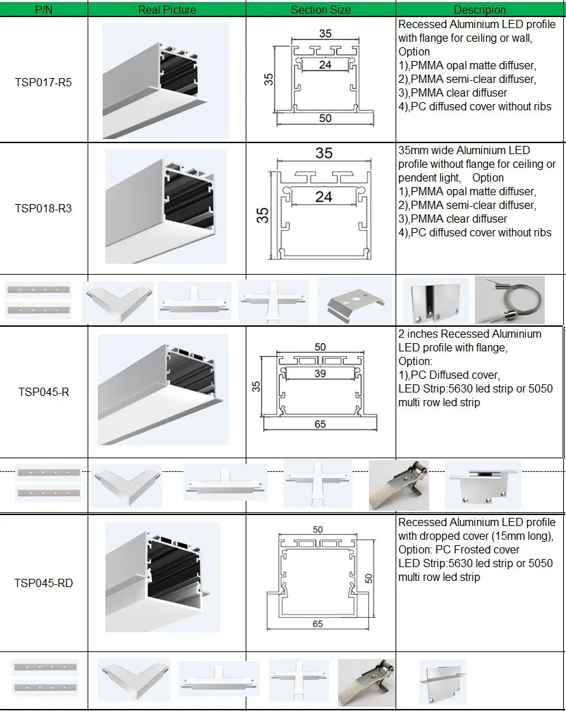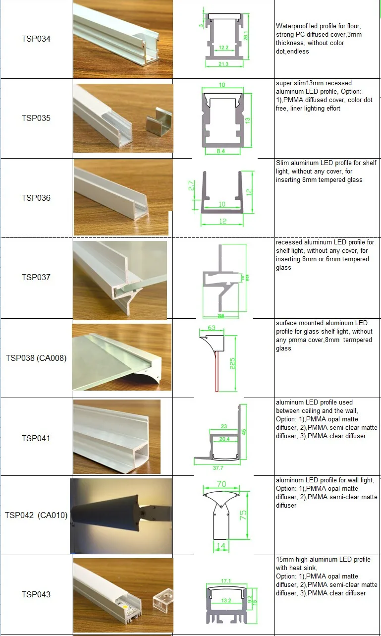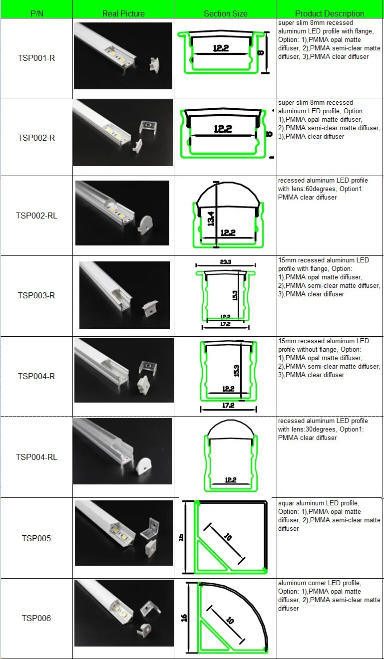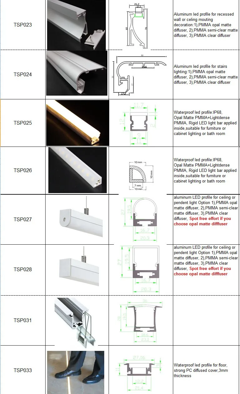 Also ,for the shape of the led aluminum profiles ,we have several styles for choice ,if your quantity is over than 1000m ,we can make the new styles for u without tooling cost