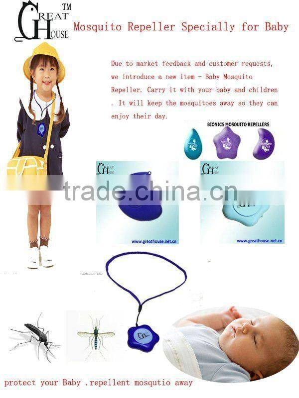 As drangonfly is the enemy of mosquito,We are according to this theroy that designed baby mosquito repeller.It's imitate drangonfly wings vibration to repel mosquitoes.