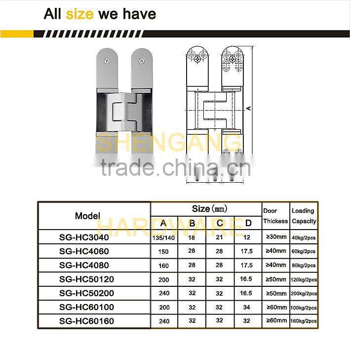 Shengang Has more than 30 series different concealed hinge system, produced a strong and secure assembly. The unique design of shengang combines visual appeal, strength and versatility.