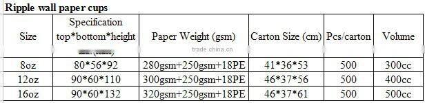 1.Ripple paper cup: 4oz/8oz/10oz/12oz,16oz