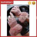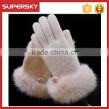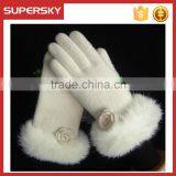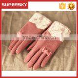 V-371 Newest Fashion Women Wool Warmer Gloves With Lace Trim Magic Finger Golves