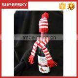 C1573 Christmas Beer Bottle Decorations Knit Toppers Bottle Santa Knitted Hat and Scarf Set
