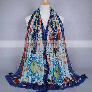 Female Big Flower Printed Tassel Scarf Autumn Popular Cotton Voile Shawls Wrap Head Pure Muslim Scarves/ Pashmina
