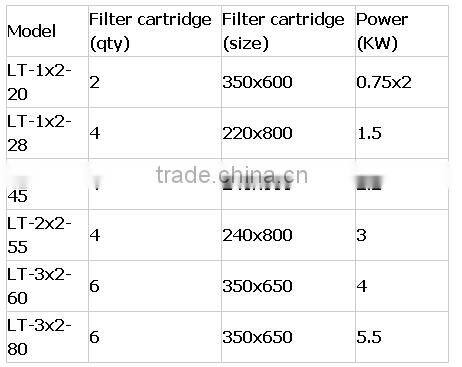 | Model | Filter area | Filter speed (m/min) | Parameters (M3/h) | Power (KW) | resistance (Pa) |