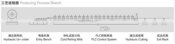 | Decoiler→Flating→Feeding & punching→Forming→Cut to length→Colletion(finish goods) |