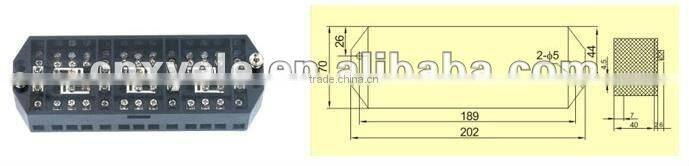 DJ6/DFY1,2 type energy measuring terminal blocks are special terminal blocks applied for standard wiring in energy measuring equipment.They are also suitable for secondary circuit of rated voltage up to 4000V and rated current up to 60A.They are used to change or inspect the electric equipments such as energy meter,electric instrument and relaying equipment under on-load circumstance.They can guarantee operation safety and improve fieldwork efficiency.