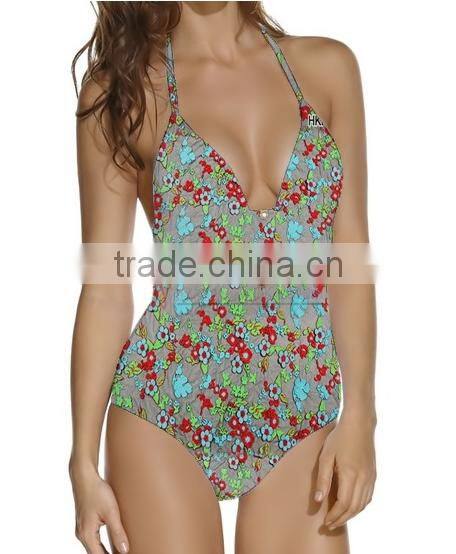 Soft embroidery with colorful flower swimwear for women .