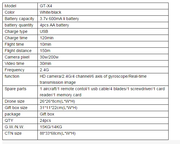 Package info: 1 pcs Aircraft+ 1 pcs remote control + 1 pcs usb wire + 1 pcs battery + 1 pcs screwdriver + 2 pcs blades