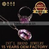 Hot Sale Jewellery Set 925 Sterling Silver 18K Gold Plated Precious Natural Amethyst Pendant Necklace