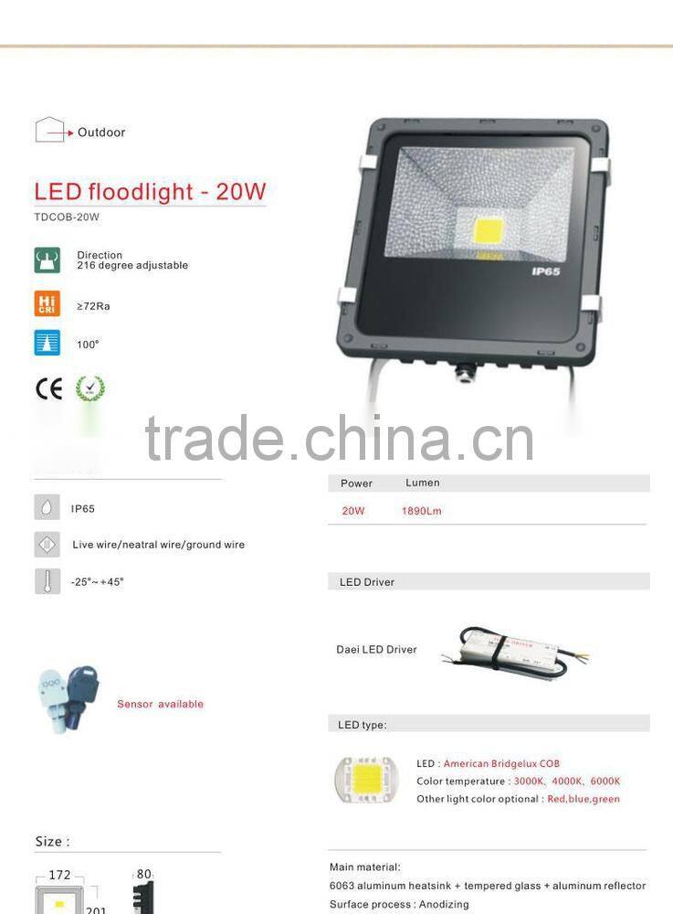 20w PIR Led Floodlight CE ROHS 3 Years Warranty