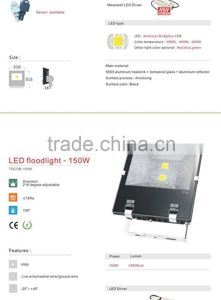 Floodlight 150W With PIR Sensor CE ROHS 3 Years Warranty