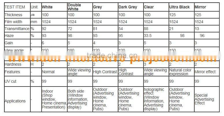 Transparent Color Rear Projection Foil/film for Glass Window, Stores, Very Suitable for Shop Window Applications